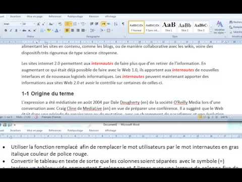 - - Utiliser la fonction remplacer afin de remplacer le mot utilisateurs par le mot internautes en gras italique couleur de police rouge.